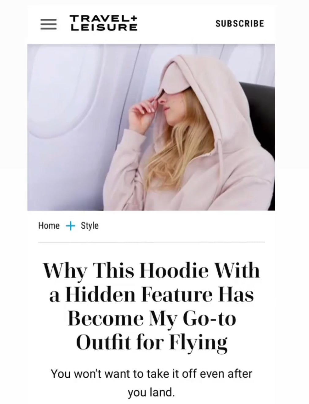 Featured in "Why This Hoodie With a Hidden Feature Has Become My Go-to Outfit for Flying" written by Karen Chen.
