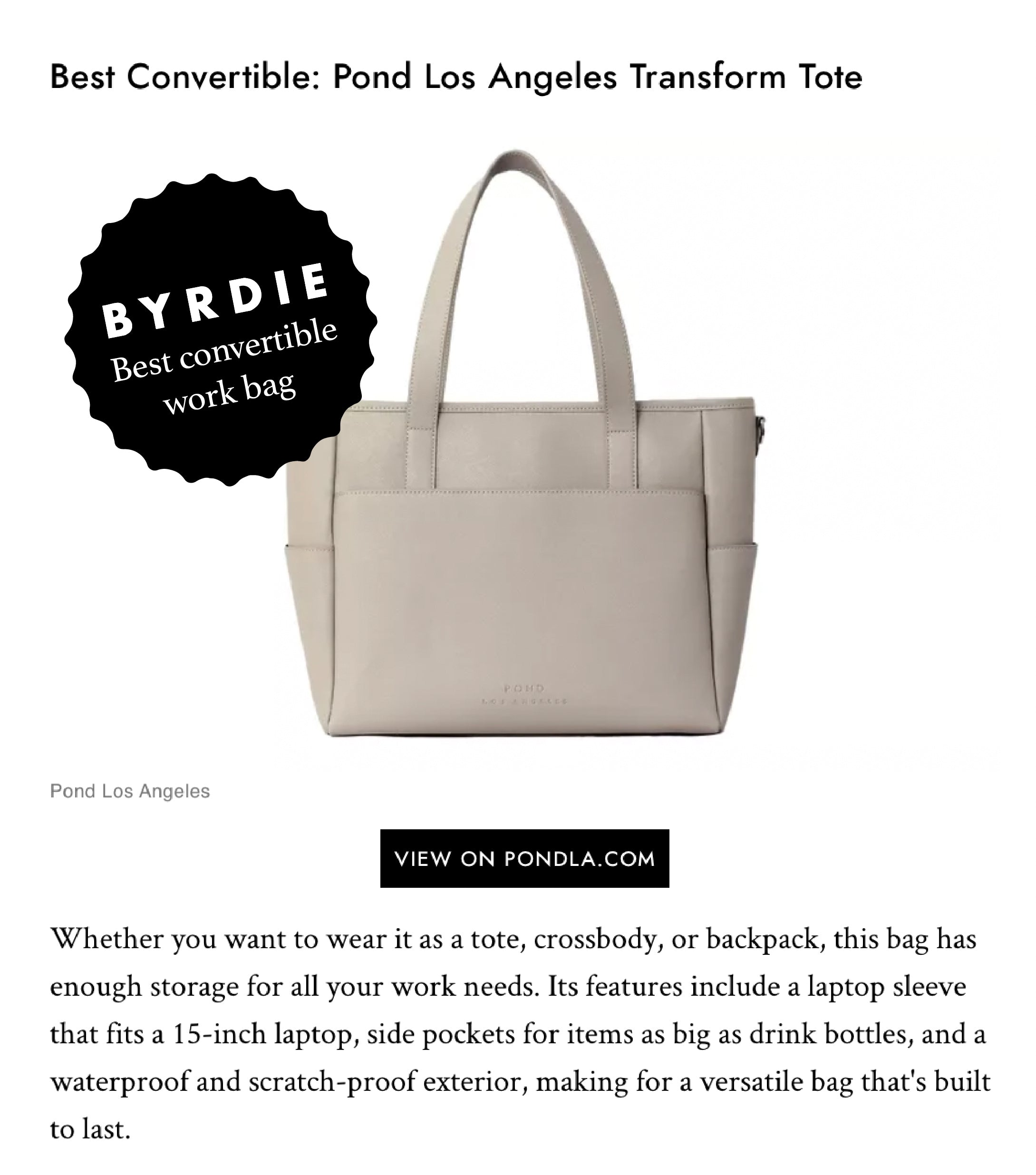 Featured in "The 25 Best Work Bags That Will Make You Look Chic and Professional" written by Emily Cieslak.