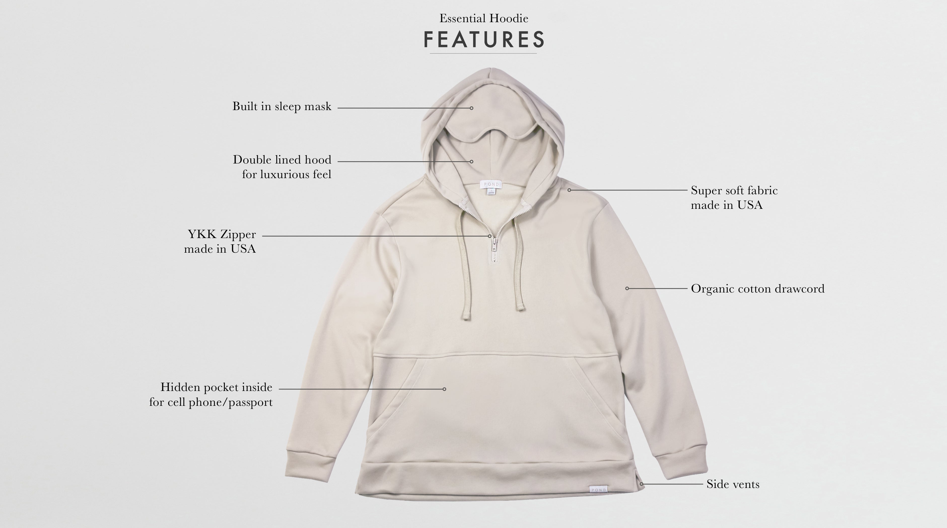 Crafted in Los Angeles in limited batches, this hoodie was designed with intention, for comfort in motion and moments of stillness. With cloud-soft fabric, premium YKK zippers, and a built-in nap mask, it wraps you in warmth and calm wherever your journey takes you.